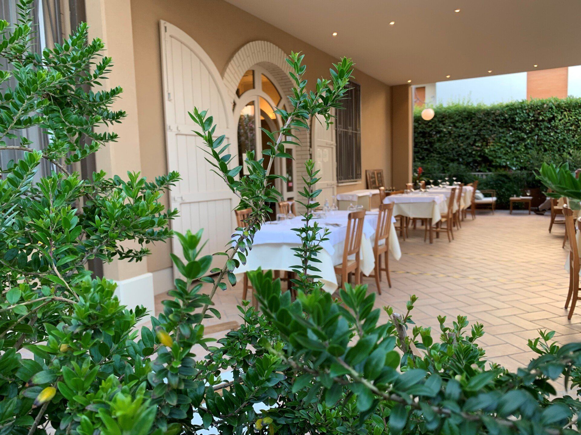 Il nostro Portico esterno, allestito nella zona antistante l’entrata del Ristorante, rappresenta una piacevolissima soluzione per i pranzi e le cene durante la stagione primaverile ed estiva Con i suoi 40 coperti circa, debitamente distanziati, offre la possibilità di tavoli all’aperto comunque riparati e incorniciati dal verde.